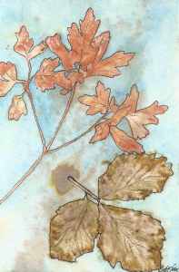 Here you can see that I am working on the bottom half. The eco print was pretty blurry and so I used a permanent marker in sepia to add in details.