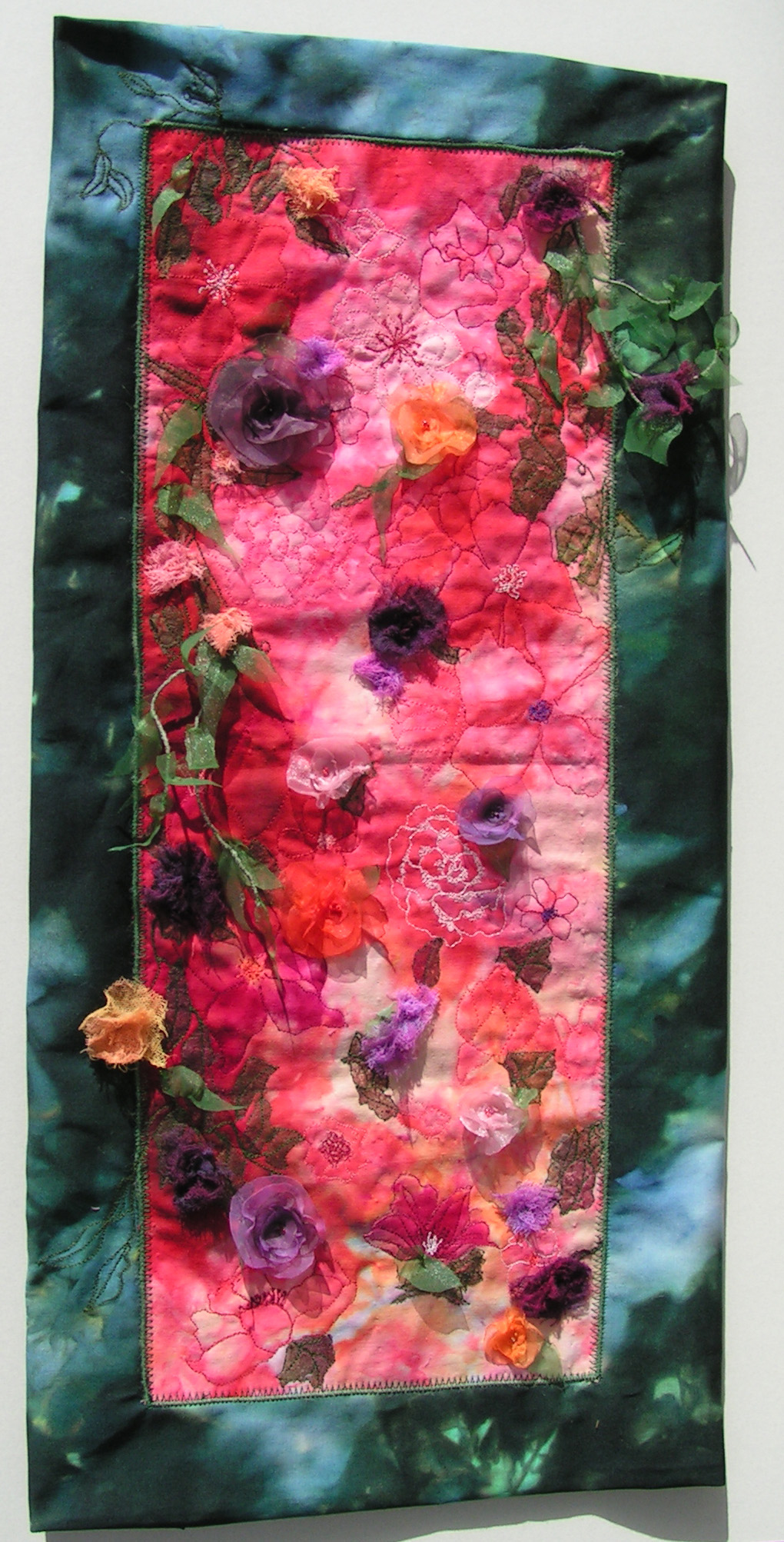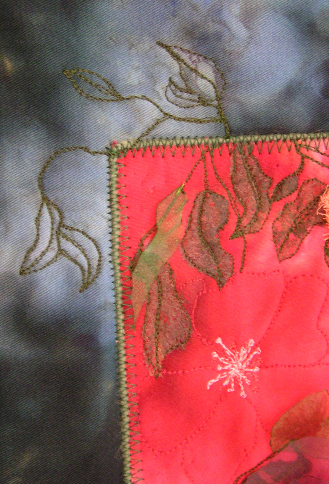 I have shown this piece before but I really didn’t like the leaves. I had previously made really long leaves that looked like tulip leaves. So I tore them off and cut them up and now I think it looks more like rose leaves. I just need to glue them down now.