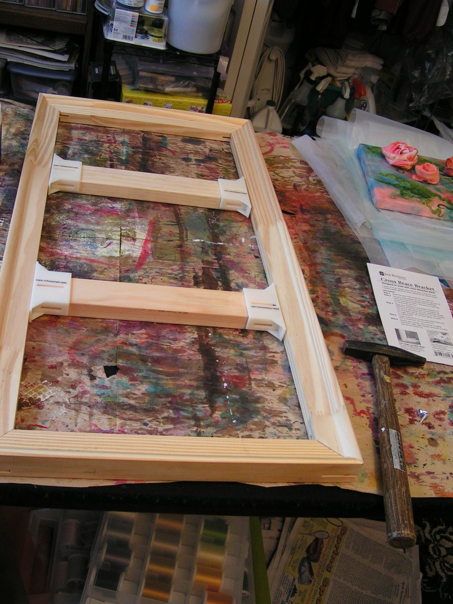 I had never put stretcher bars together before but it was pretty simple. I ordered extra support bars since the piece is so long and narrow. The supports help keep it square.