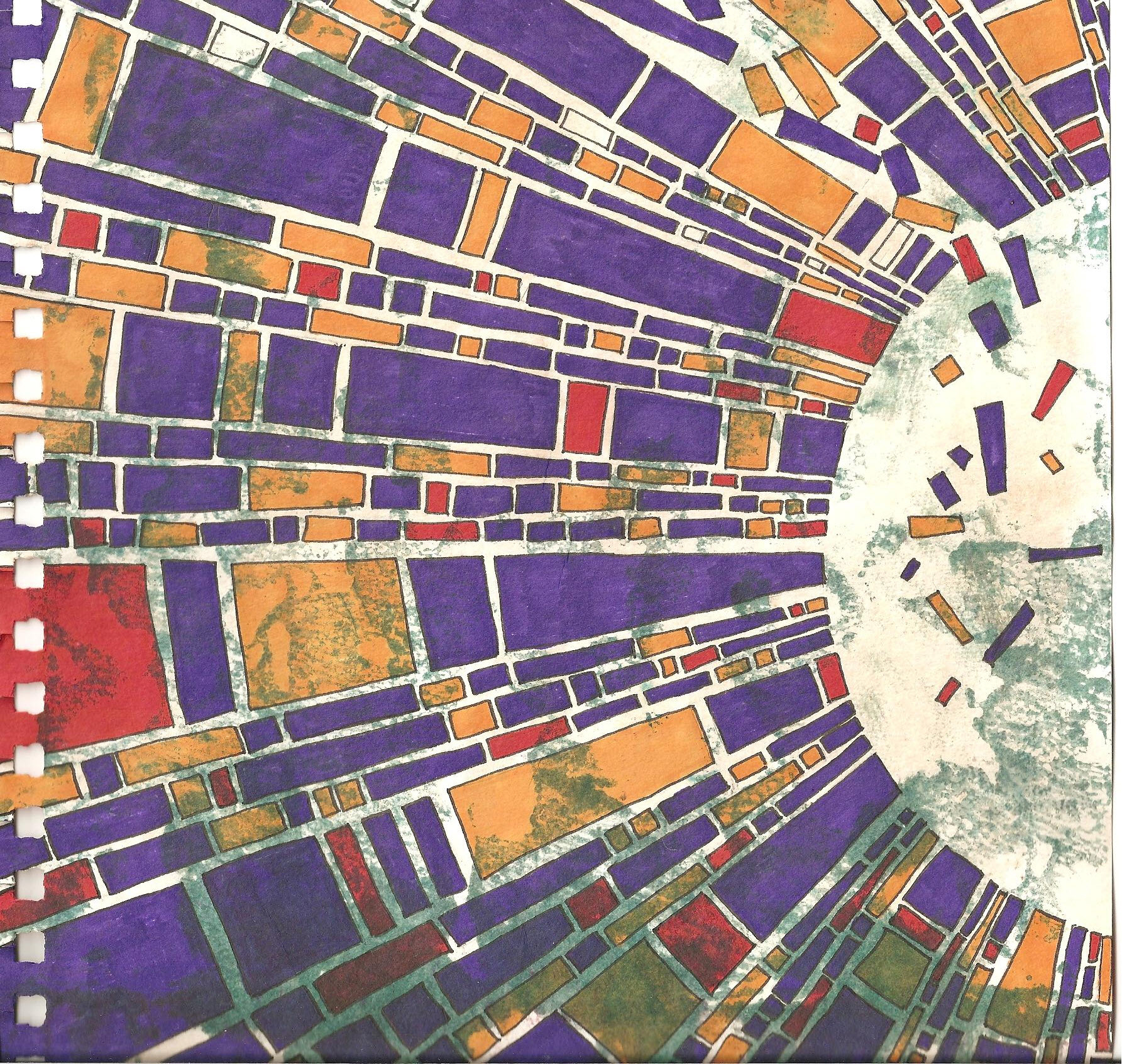 I have still been working in my circles sketchbook. This is one of the pages that I have done with markers. The background was a breakdown screen print from our mammoth screen printing session. Hope you have a good weekend and thanks for stopping by!