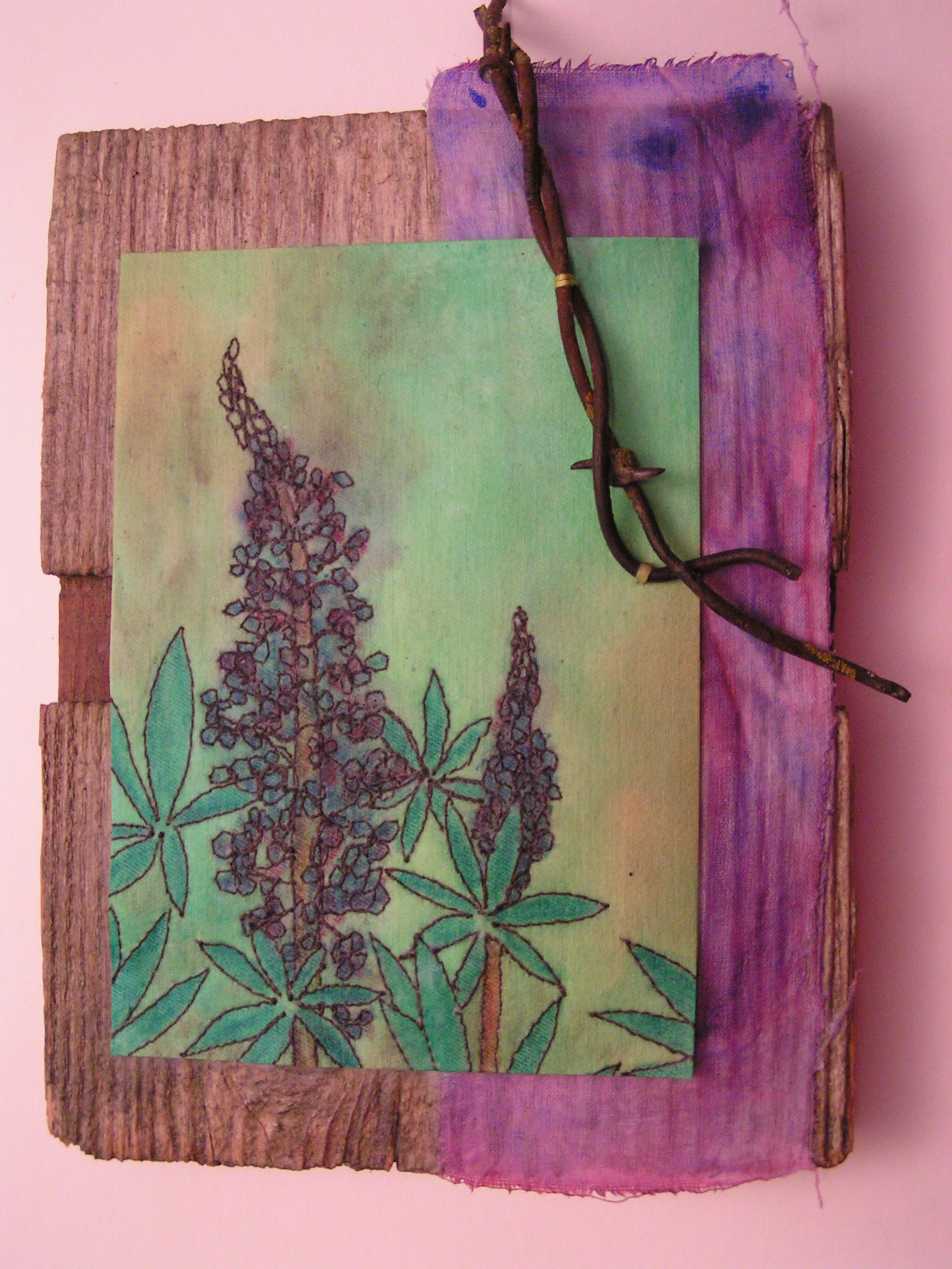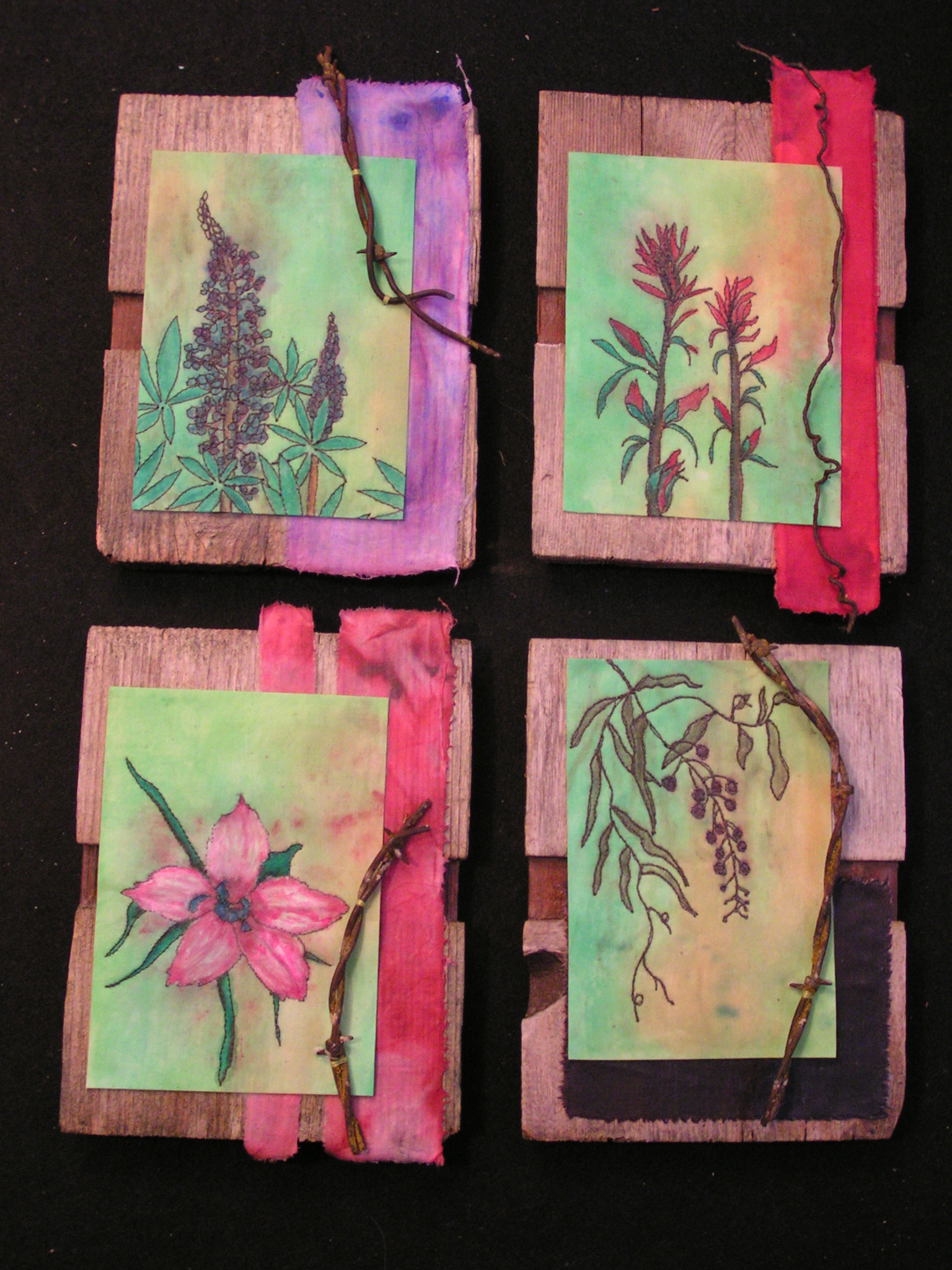 Here’s one with a pine cone that I stenciled on to screen printed paper. This is one of my own stencils.