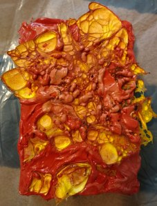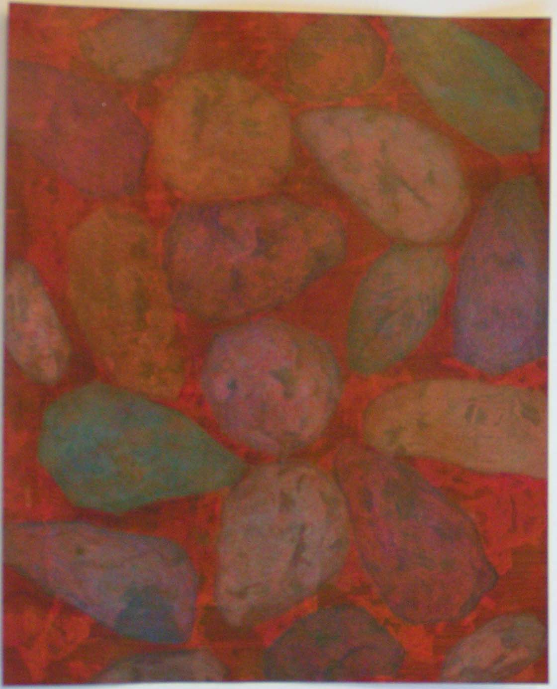 I finished up the river rock painting. I sprayed it with fixative (Thanks Paula!) and then did more painting on top.
