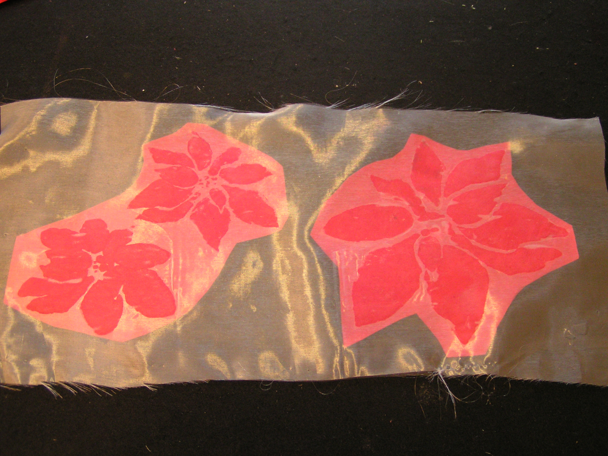 This piece is a portion of a sample that I made for my Nuno Felting with Paper Fabric Lamination online class. It was originally 4 times this long but I cut it up into 4 pieces. I am going to try 4 different techniques, one for each piece.